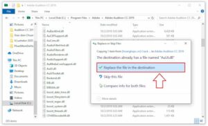 Trong file cài đặt mà bạn đã tải ở bài viết này hoặc bạn có thể tải file cr@ck mình có để riêng ở trên. Trong thư mục cr@ck có file tên là: AuUI.dll bạn hãy copy file này bỏ vào đường dẫn lưu trữ ở ổ C của phần mềm này là: C:\Program Files\Adobe\Adobe Audition CC 2019