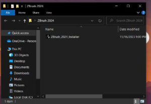 Tìm đến thư mục vừa giải nén, mở ra và tìm file có tên “ZBrush_2024_Installer”. Nhấp đúp vào file này để bắt đầu quá trình cài đặt.