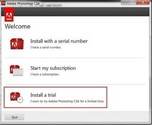 Bước 3: Ở bước tiếp theo chọn Install a trial nếu muốn cài đặt phiên bản dùng thử. Nếu có key thì bạn chọn Install with a serial number hoặc Start my subscription.