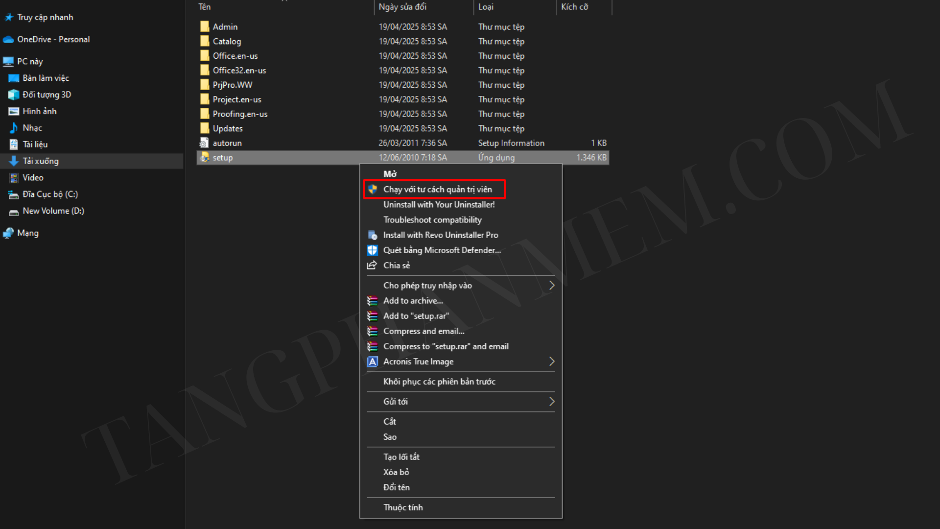 Bước 2: Chạy file setup.exe như hình và chạy với quyền admin ( quyền cao nhất tránh lỗi: Hãy tắt tất cả trình diệt virus trước khi cài đặt để không phát sinh lỗi)